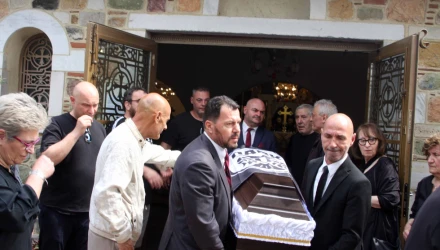 Το τελευταίο αντίο στον Κούλη Κωνσταντίνου, είπαν οι φίλοι του ΠΑΟΚ οι οποίοι αποχαιρέτησαν με τον δικό τους τρόπο το ηγετικό στέλεχος του οπαδικού κινήματος του Δικεφάλου και της Θυρας 4 στην κηδεία του η οποία πραγματοποιήθηκε στις 11:00 στον Ιερό Ναό Αναστάσεως του Κυρίου στο πρώην στρατόπεδο Μ.Αλεξάνδρου στους Αμπελόκηπους.