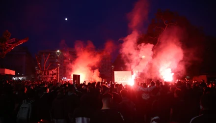 Οι φίλοι του Δικεφάλου έχουν κατακλύσει από νωρίς την πλατεία Ναυαρίνου, ανάβοντας καπνογόνα και τραγουδώντας συνθήματα για την αγαπημένη τους ομάδας.