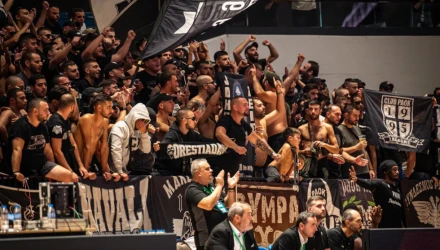 Ο ΠΑΟΚ αντιμετωπίζει αυτή την στιγμή την Μπούρσασπορ, με φόντο την πρόκριση στον τελικό των προκριματικών του Basketball Champions League, έχοντας ξανά στο πλευρό του τους φίλους της ομάδας.
