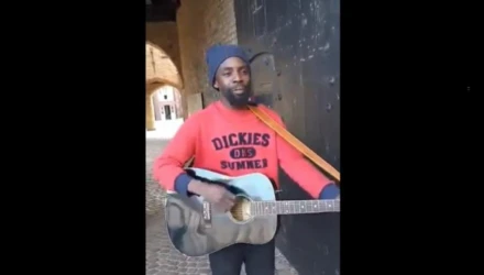 Οπαδοί τραγουδούν «ΠΑΟΚ Ολέ» με μουσικό του δρόμου στην Μπριζ