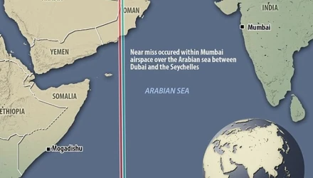 Δύο επιβατικά αεροσκάφη, ένα της Emirates Airlines, που έχει την έδρα της στο Ντουμπάι και ένα άλλο της Etihad Airways, με έδρα το Αμπού Ντάμπι, απέφυγαν την σύγκρουση την τελευταία στιγμή, όταν συναντήθηκαν, προερχόμενα από αντίθετες κατευθύνσεις, στον εναέριο χώρο της Ινδίας.