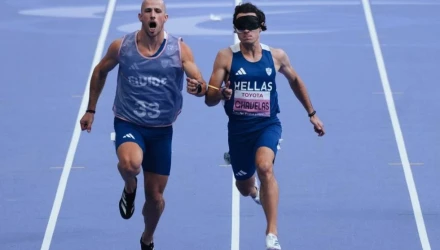Ο Έλληνας αθλητής με οδηγό τον Γιάννη Νυφαντόπουλο τερμάτισε στην τελική κούρσα των 100μ και κατάφερε να ανέβει στο πρώτο σκαλί του βάθρου για δεύτερη συνεχόμενη φορά, αφού είχε κατακτήσει το χρυσό και στο Τόκιο.
