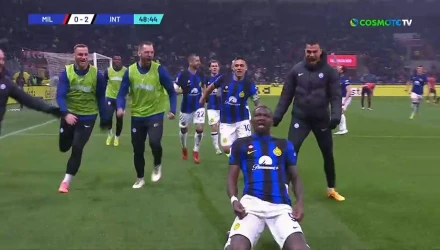 Οι νερατζούρι άνοιξαν το σκορ με τον Ατσέρμπι στο 18΄, ενώ διπλασίασαν τα τέρματά τους με τον Τουράμ στο 49΄.