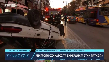 Πατησίων: Όχημα εξετράπη της πορείας του και κατέληξε... ανάποδα!