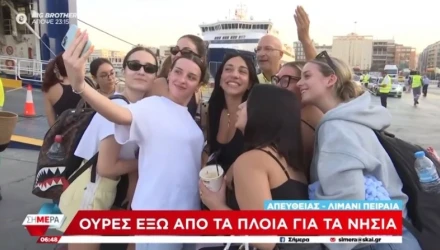 Ο δημοσιογράφος του ΣΚΑΪ πλησίασε μια παρέα κοριτσιών, που ετοιμάζονταν να επιβιβαστούν στο πλοίο για την Πάρο, καλημερίζοντάς τες.