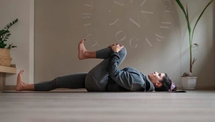 Ξαπλώστε με την πλάτη στο έδαφος, φέρτε το ένα πέλμα πάνω στο πόδι και τραβηξτε το προς το στήθος. Μείνετε για 5 αναπνοές.