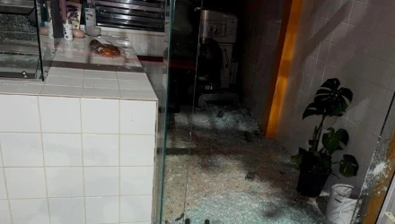 Από το ωστικό κύμα καταστράφηκε η τζαμαρία και οι βιτρίνες του μαγαζιού, ενώ προκλήθηκαν ζημιές και σε ένα σταθμευμένο ΙΧ αυτοκίνητο.