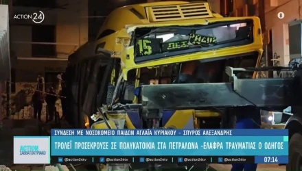 Ένα απίστευτο τροχαίο σημειώθηκε το βράδυ της Παρασκευής (13/2) στην περιοχή των Πετραλώνων, όταν τρόλεϊ προσέκρουσε σε παρακείμενη πολυκατοικία.