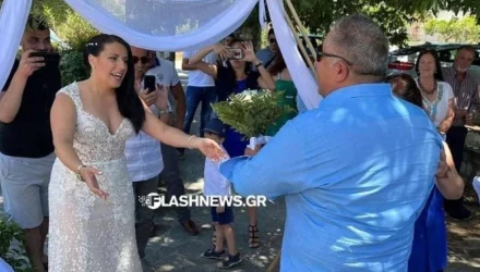 Μάλιστα του έδωσε και την ανθοδέσμη που ήδη κρατούσε για να της την δώσει, όπως επιτάσσει το έθιμο. Ενώ καλεσμένοι φώναζαν τον ιερέα «για να μην φύγει ο γαμπρός» κάτι για το οποίο φυσικά δεν υπήρχε λόγος.