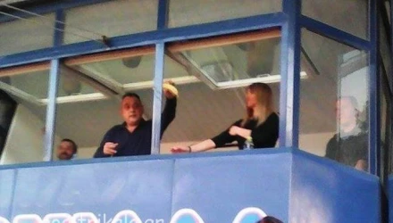 Ένα απίθανο τρόπο βρήκε ο Χρήστος Γιαλιάς να πικάρει τον Αλέξη Κούγια. Ο μεγαλομέτοχος της ΠΑΕ έγραψε πάνω σε μια μπανάνα το όνομα του ιδιοκτήτη της ΑΕΛ και την επιδείκνυε στους φιλάθλους αμέσως μετά το τέλος του αγώνα, γνωρίζοντας την αποθέωση με το σύνθημα «είναι τρελός ο πρόεδρος».