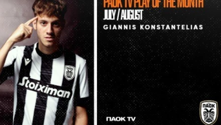 Η «χορευτική» ενέργεια του Γιάννη Κωνσταντέλια στο ματς κόντρα στην Μπεϊτάρ Ιερουσαλήμ αναδείχθηκε PAOK TV Play of the Month Ιουλίου/Αυγούστου, μέσα από την ψήφο του κόσμου.
