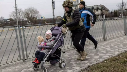 Σχεδόν το 90% αυτών που διέφυγαν από την Ουκρανία είναι γυναίκες και παιδιά, καθώς οι ουκρανικές αρχές δεν επιτρέπουν την αναχώρηση ανδρών που είναι σε ηλικία να φέρουν όπλα.