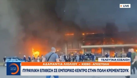 Ρωσικοί πύραυλοι έπληξαν εμπορικό κέντρο στην πόλη Κρεμεντσούκ στην κεντρική Ουκρανία, την ώρα που μέσα ήταν πάνω από 1.000 άνθρωποι, σύμφωνα με όσα δήλωσε ο Ουκρανός πρόεδρος, Βολοντίμιρ Ζελένσκι, ενώ ακόμα η φωτιά μαίνεται.