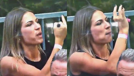 Στην αρχή ύψωσε το μεσαίο δάχτυλο, ενώ δεν έμεινε εκεί όπως μαρτυρά και η επίμαχη σκηνή. Οι φίλες της που κάθονταν δίπλα δεν αντέδρασαν. Ουδείς, βέβαια, μπορεί να γνωρίζει που απευθύνονταν οι χειρονομίες της γυναίκας. Το πιο πιθανό είναι να πρόκειται για πείραγμα.