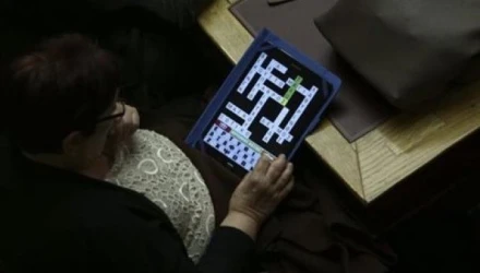 Επίσης: η Αλέκα Παπαρήγα έβγαλε το... τάμπλετ της και έλυσε ένα σταυρόλεξο (φωτογραφία). Οι γαλάζιοι βουλευτές θέλησαν να τσεκάρουν από τα κινητά του εάν όντως οι πληγές του Φαραώ (για τις οποίες μίλησε ο Ευ. Τσακαλώτος) ήταν δέκα ή... εφτά. Τις μπέρδεψαν με τα επτά θαύματα ή με την περίοδο των παχιών αγελάδων. Θέλετε κι άλλα; Εμαθε όλη η Βουλή (και μάλιστα από μικροφώνου) ότι ο Κωστής Χατζηδάκης θα γίνει πατέρας (γι' αυτό και ψήφισε πρώτος).