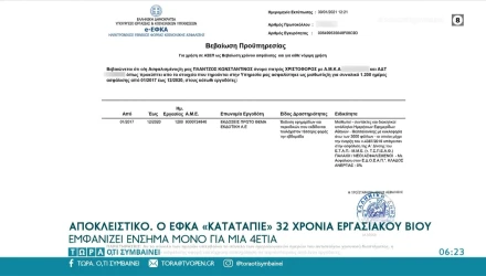 Ο ΕΦΚΑ «κατάπιε» 32 χρόνια εργασιακού βίου και εμφανίζει ένσημα μόνο για μία 4ετία.