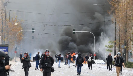 Ο κόσμος, που ήταν σε αυτό το σημείο, σύμφωνα με το ieidiseis, τους ζητούσε να μην προκαλέσουν επεισόδια. Έφτασαν στο Μεγάλη Βρετανία και μόλις ανακοινώθηκε το τέλος της συγκέντρωσης ξέσπασαν οι ταραχές. Η παράκληση που ακούστηκε από τα μικρόφωνα ήταν ο κόσμος να αποχωρήσει ειρηνικά.