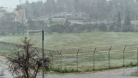 Ποτίζουν γήπεδο στη Χαλκίδα... ενώ χιονίζει