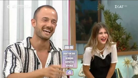 Η Κατερίνα Καραβάτου έκπληκτη αναφώνησε: «Τι λες;;;», ενώ η Σωτηρία προσπαθώντας να βρει το φρούτο απάντησε: «Το καρπούζι». Τότε η παρουσιάστρια τους ενημέρωσε ότι τελείωσε ο χρόνος, με τον Νίκο να εξηγεί ότι προσπάθησε με τον δικό του τρόπο να περιγράψει τη λέξη και τους υπόλοιπους να ξεκαρδίζονται.