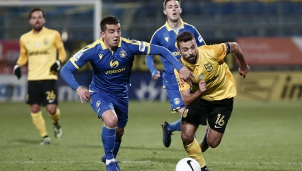 Ο Αρης στο α’ ημίχρονο έβγαλε μέσα στο γήπεδο όλο το πλούσιο ταλέντο του. Κυκλοφόρησε χαμηλά την μπάλα χωρίς πολλά λάθη, είχε πλάτος στις επιθέσεις κυρίως λόγω της προώθησης του Σάκιτς στην πλευρά και έδειξε αποφασιστικότητα στο παιχνίδι του. Κέρδισε πέντε κόρνερ στα πρώτα 17 λεπτά και με την εξαιρετική μεσοαμυντική απόδοση των Μπερτόγλιο, Γκάμα και Ματέο Γκαρσία έκανε τη ζωή του Αστέρα δύσκολη. Οι γηπεδούχοι δεν μπορούσαν με τίποτε να πάρουν μέτρα στο γήπεδο, καθώς η οποία προσπάθεια τους έσβηνε κάπου στον χώρο του κέντρου, όπου Τζέγκο και Σάσα ήταν απροσπέλαστοι. Είναι χαρακτηριστικό ότι η μοναδική ευκαιρία του Αστέρα στο α’ ημίχρονο έγινε στις καθυστερήσεις με κεφαλιά του Σίτο.
