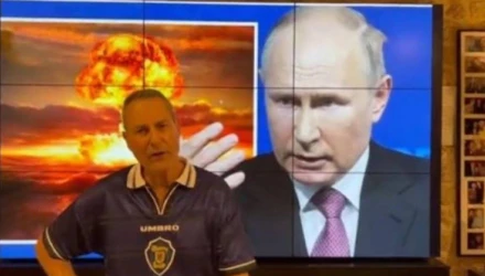 «Έχω μια προειδοποίηση για σένα, Πούτιν», ήταν το μήνυμα που έστειλε στον Ρώσο πρόεδρο και ενώ στο βίντεο φαίνεται στο βάθος ο ηγέτης του Κρεμλίνου με ένα σύννεφο πυρηνικής έκρηξης.