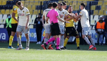Ο ποδοσφαιριστής της ΑΕΚ, Ντάνιελ Σιμάνσκι με το τελικό σφύριγμα του διαιτητή γύρισε προς τα επίσημα και φαίνεται να έκανε κάποιες χειρονομίες, με τον Χαβιέ Ματίγια να αντιδρά και να κινείται προς το μέρος του. Αυτό είχε ως αποτέλεσμα να προκληθεί ένας μικρός χαμός, όμως με την παρέμβαση των ψυχραιμότερων το συμβάν έληξε γρήγορα.