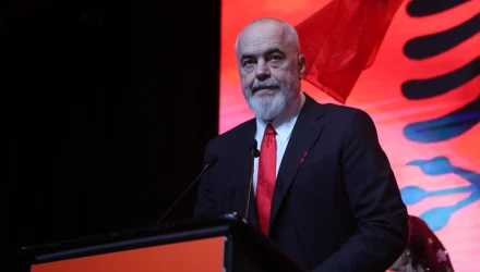 Ο Αλβανός πρωθυπουργός άρχισε την ομιλία του ανακοινώνοντας ότι οι Αλβανοί εκπαιδευτικοί που ζουν στην Ελλάδα και διδάσκουν αλβανικά στα παιδιά θα ενταχθούν σε πρόγραμμα και θα λαμβάνουν αμοιβή από το αλβανικό κράτος.