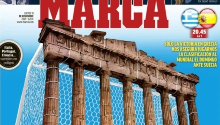 Με αφορμή την δοκιμασία της Ισπανίας με την Ελλάδα στο ΟΑΚΑ για τα προκριματικά του Παγκοσμίου Κυπέλλου του Κατάρ 2022, η εφημερίδα «Marca» έντυσε με τέρμα ποδοσφαίρου τον Παρθενώνα και έχοντας τίτλο: «Το μεγάλο παιχνίδι».