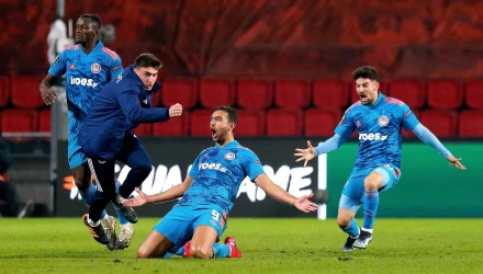 Οι Ολλανδοί αιφνιδίασαν τους Πειραιώτες και ευτύχησαν να πάρουν κεφάλι στο σκορ με τον Ζάχαβι στο 23΄. Ο Τόμας εκτέλεσε το κόρνερ από δεξιά και ο Ισραηλινός φορ με κεφαλιά νίκησε τον Σα για το 1-0.