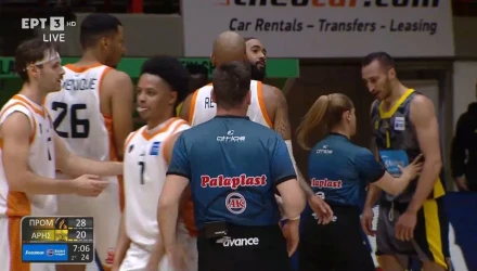 Ο Άρης παίζει στην Πάτρα για τα play off με αντίπαλο τον Προμηθέα... Ο Σλαφτσάκης διαμαρτυρήθηκε αρχικά για φάουλ του Κάουαν στο σκριν και αφού δεν πήρε κάτι στη φάση, εσκεμμένα απάντησε με το ίδιο νόμισμα στον Αμερικανό με αποτέλεσμα να χρεωθεί τεχνική ποινή και να χρειαστεί να παρέμβει τόσο ο Καστρίτης όσο και το διαιτητικό team για να αποφευχθούν τα χειρότερα.