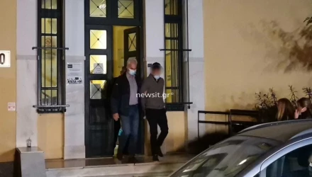 Ο προπονητής τένις την ώρα που εξέρχεται του κτιρίου στην Ευελπίδων