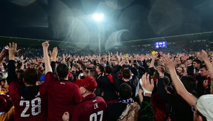 Ετσι, η ομάδα του Πρίσκε πανηγύρισε έξαλλα το τελικό σφύριγμα του διαιτητή και οι χιλιάδες φίλαθλοί της που βρέθηκαν στο εκτός έδρας παιχνίδι να στηρίξουν την ομάδα τους, μπήκαν μέσα στον αγωνιστικό χώρο.