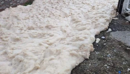 Το θέαμα είναι πραγματικά απόκοσμο, καθώς δρόμοι στον Αγιόκαμπο έχουν στην κυριολεξία αφρίσει.