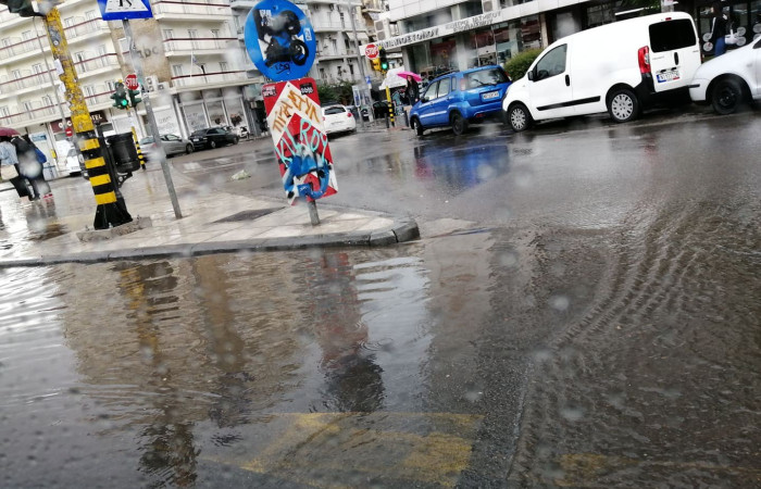 Προβλήματα από τη βροχή σε κεντρικούς δρόμους της Θεσσαλονίκης
