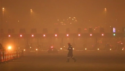 Πυκνός μαύρος καπνός έχει καλύψει την ευρύτερη περιοχή ενώ έχει καλύψει μεγάλο μέρος της Αττικής και της Εύβοιας.