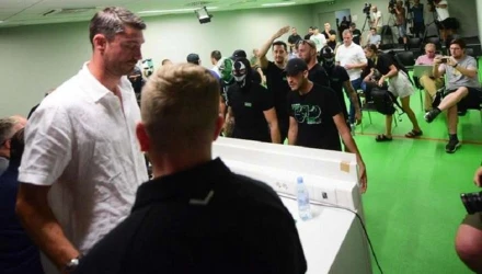 Οι οργανωμένοι οπαδοί της ομάδας κατά τη διάρκεια της παρουσίασής του, μπούκαραν στην αίθουσα που δινόταν η συνέντευξη Τύπου και την διέκοψαν.