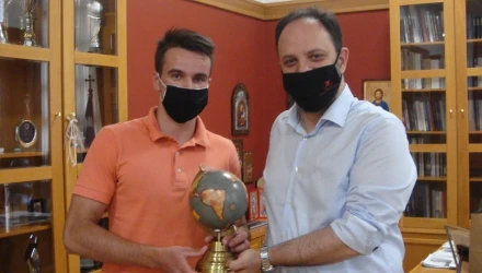 Τον νικητή του 5ου Πανελλήνιου Διαγωνισμού Ρομποτικής, Θεόδωρο Τσαούση, υποδέχτηκε στο γραφείο του ο Δήμαρχος Καλαμαριάς, Γιάννης Δαρδαμανέλης, προκειμένου να τον συγχαρεί για την επιτυχία του.