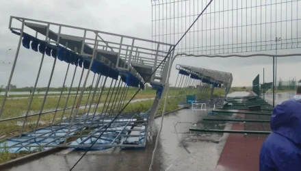Ο Βασίλι Γκολούμπεφ, σε μήνυμά του στη εφαρμογή Telegram, έγραψε πως η κατάρρευση σημειώθηκε εν μέσω ισχυρών ανέμων σε μια εγκατάσταση δίπλα σε ένα κανάλι κωπηλασίας. Δεκατρία παιδιά και δύο ενήλικες νοσηλεύονται σε νοσοκομείο της πόλης.