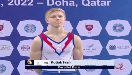 Με το γράμμα Ζ στο στήθος ανέβηκε στο βάθρο των μεταλλίων ο Ρώσος γυμναστής, Ιβάν Κούλιακ, στο Παγκόσμιο Κύπελλο γυμναστικής στην Ντόχα.