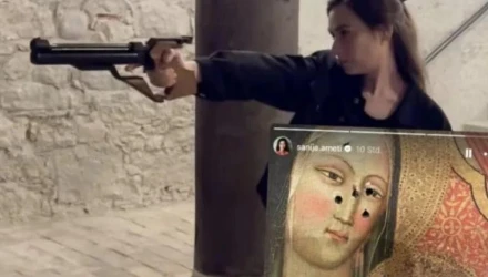 Ισχυρίστηκε μάλιστα ότι πρόκειται για ατύχημα ωστόσο η ίδια είχε δημοσιεύσει στον προσωπικό της λογαριασμό στο Instagram την εικόνα της Παναγίας και του Χριστού γεμάτη τρύπες από σφαίρες γράφοντας «Τερματισμός».