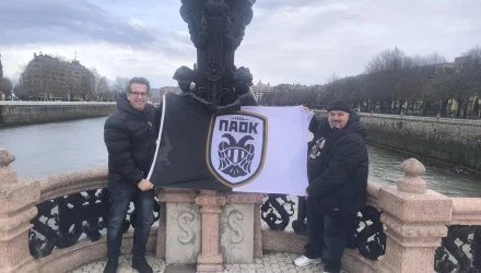 Ήδη οι πρώτοι φίλαθλοι του ΠΑΟΚ είναι εκεί στο Σαν Σεμπαστιάν. Το Metrosport.gr εξασφάλισε φωτογραφίες από την παρουσία των φίλων του Δικεφάλου στην όμορφη Ισπανική Πόλη. Οι Παντελής Σαμλίδης, Τάσος Βουβαλίδης και Τρύφων Παπαμιχαλάκης, παθιασμένοι -ΠΑΟΚτσήδες, ανυπομονούν να παρακολουθήσουν μία ακόμη ευρωπαϊκή αναμέτρηση του ΠΑΟΚ.