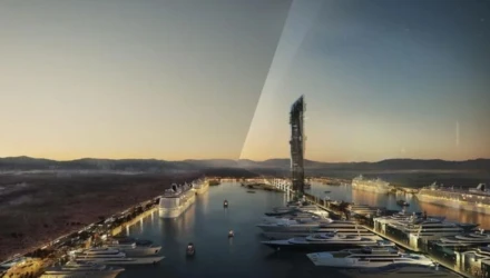 Σε άλλες φαίνονται παντού τεράστιοι σωροί άμμου, οι οποίοι, όπως είπε ο COO, συσσωρεύτηκαν για να δημιουργηθεί χώρος για τη σχεδιαζόμενη «Κρυφή Μαρίνα». Ο κ. Pendleton πρόσθεσε ότι έχουν ήδη μετακινηθεί πάνω από 100 εκατομμύρια κυβικά μέτρα άμμου. Προηγούμενες εικόνες σχεδιασμού αποκάλυψαν τα σχέδια για το φουτουριστικό εσωτερικό της πόλης.
