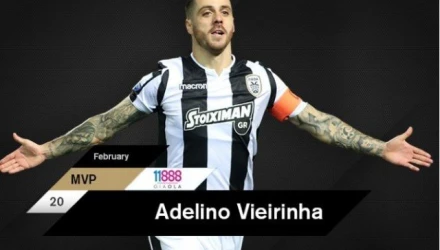 Στον ίσως πιο κρίσιμο μήνα της σεζόν δεν κρύφτηκε. Κατέθεσε ψυχή, σώμα και φυσικά την μεγάλη ποδοσφαιρική κλάση μέσα στο γήπεδο και ήταν κομβικός στην πορεία της ομάδας. Κυρίες και κύριοι, ο 11888 MVP Φεβρουαρίου, Αντελίνο Βιεϊρίνια.