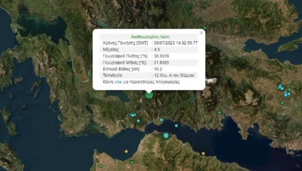 Σεισμός 4,5 Ρίχτερ σημειώθηκε στην Αιτωλοακαρνανία