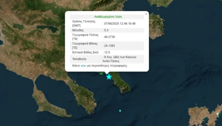 Σεισμός 5.3 Ρίχτερ στο Άγιο Όρος - 9 χιλιόμετρα από τις Καρυές το επίκεντρο