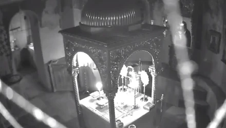 Τη στιγμή του ισχυρού σεισμού των 5,2 Ρίχτερ κατέγραψε κάμερα στον ιερό ναό του Πρωτάτου στις Καρυές, που όπως φαίνεται από το υλικό που δόθηκε στη δημοσιότητα, η δόνηση ήταν αρκετά δυνατή και προκάλεσε αναταράξεις εντός του ναού.