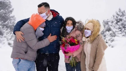 Σημειώνεται ότι η πρόταση γάμου έγινε σε 1.450 μέτρα υψόμετρο με -10 βαθμούς Κελσίου και μισό μέτρο χιόνι.