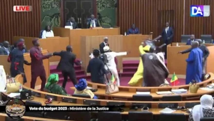 Ο καβγάς ξέσπασε κατά τη διάρκεια συζήτησης για τον προϋπολογισμό καθώς ο βουλευτής της αντιπολίτευσης Μασάτα Σαμπ κατέβηκε από το βήμα και χτύπησε την βουλευτή Άμι Ντιαγέ Γκνίμπι από τον κυβερνώντα συνασπισμό.