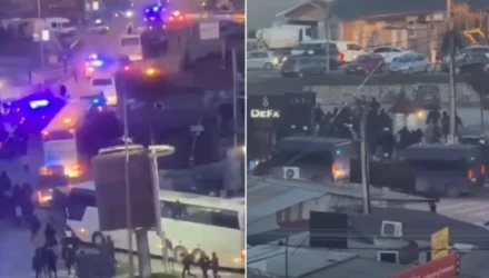 Ωστόσο, η μεταφορά τους διακόπηκε όταν οπαδοί πέταξαν πέτρες στα λεωφορεία, προκαλώντας σημαντικές ζημιές και σπάζοντας τα παράθυρα των οχημάτων.