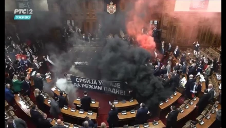 Όπως φαίνεται και στα πλάνα που κάνουν τον γύρο του διαδικτύου, βουλευτές της σερβικής αντιπολίτευσης έριξαν καπνογόνα και δακρυγόνα για να δείξουν την αντίθεσή του στις κυβερνητικές πολιτικές, που πυροδοτήθηκαν από την τραγωδία στο Νόβι Σαντ, στοιχίζοντας τη ζωή σε 15 ανθρώπους.